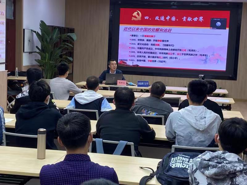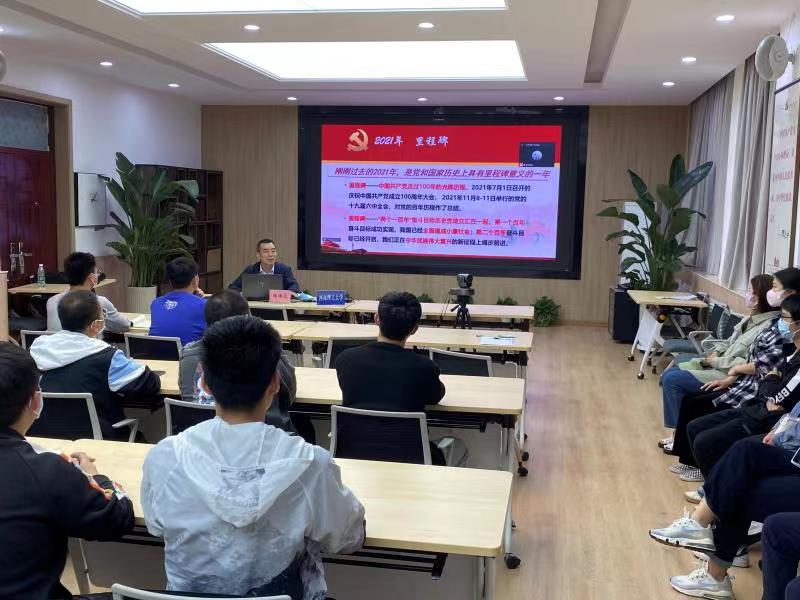 二楼会议室为研究生生讲授题为《领会新决议精神,争创“双一流”学科----学习贯彻十九届六中全会精神》思政课,讲授采用线上线下结合方式,2021级全体研究生参加学习。