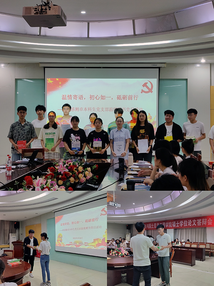 一楼会议室召开了以“温暖赠书、温情寄语;初心如一、砥砺前行”为主题的党日活动,支部书记李静老师、支部副书记杨永菊老师及遥感测卓专业本科生党支部全体党员共70余人参加本次党日活动。