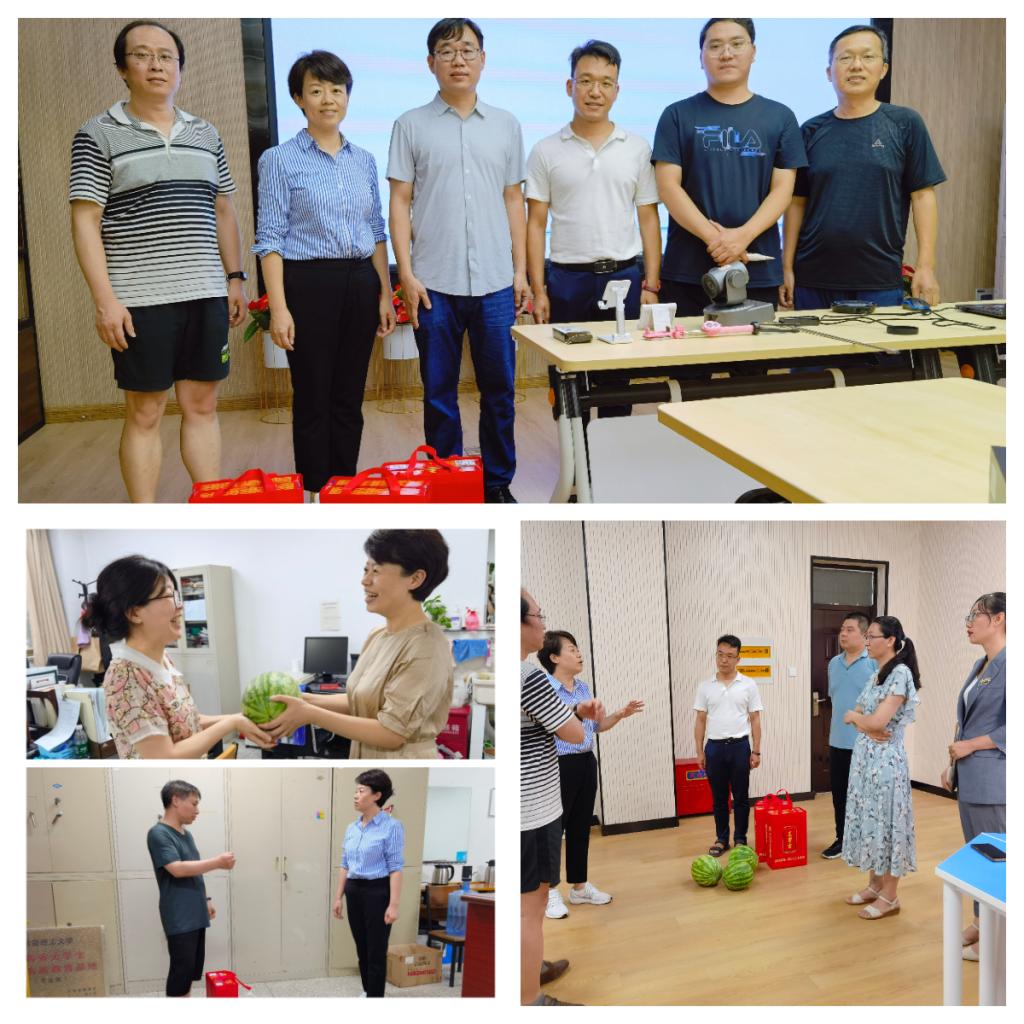 党委书记茹艳、副院长程钢和工会副主席梁翠英等,走访慰问暑期坚守工作岗位的教师们,并送上降温解暑的水果、凉茶等慰问品。