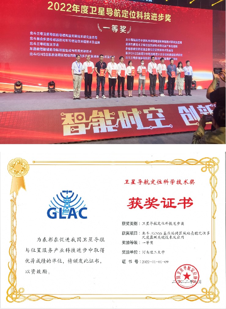 为第一完成单位的研究成果“北斗/GNSS基准站网区域地壳稳定性多尺度监测关键技术及应用”获得卫星导航定位科技进步一等奖,成果第一完成人徐克科教授上台领奖,并受邀在大会上作“人工智能与北斗/GNSS大数据处理”专题报告。