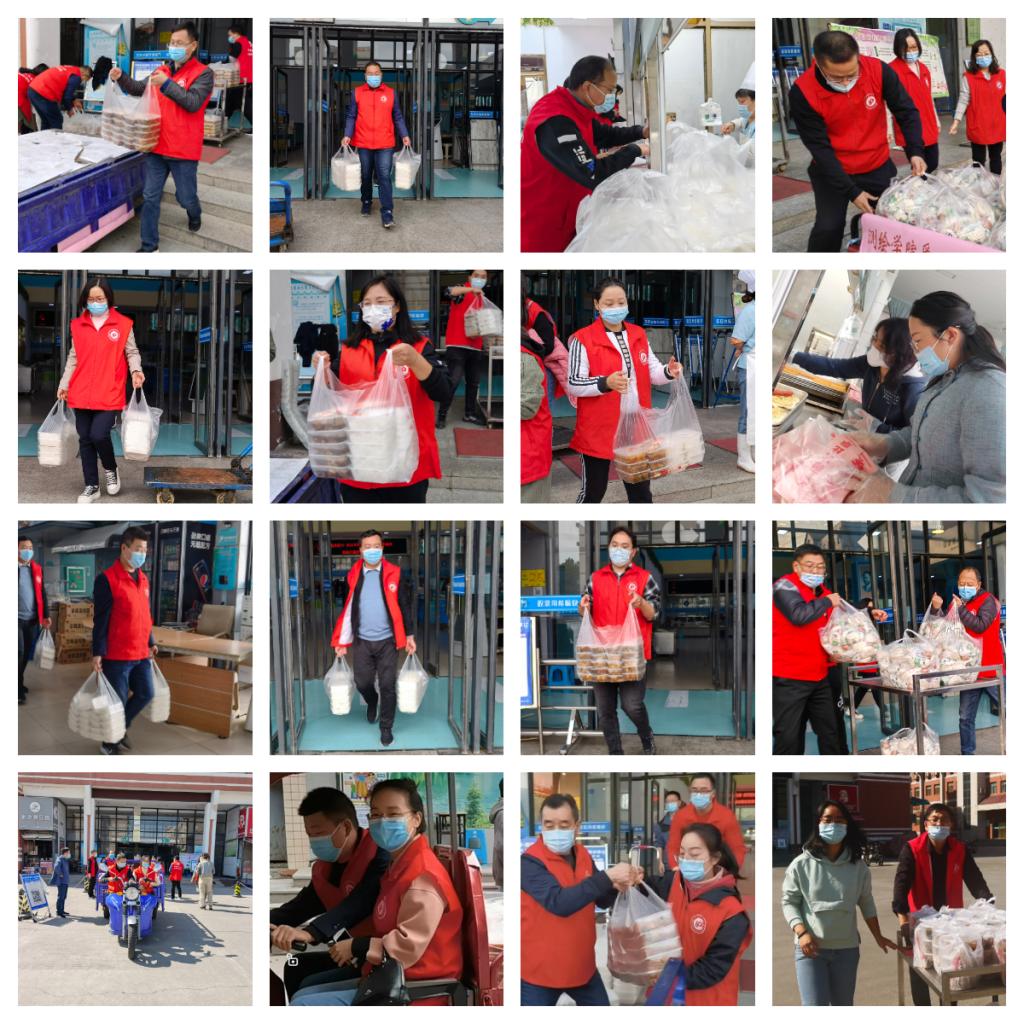 组建教职工爱心送餐志愿服务队,包括党员、党外人士共计40余人,骑着爱心送餐车为学生送餐。