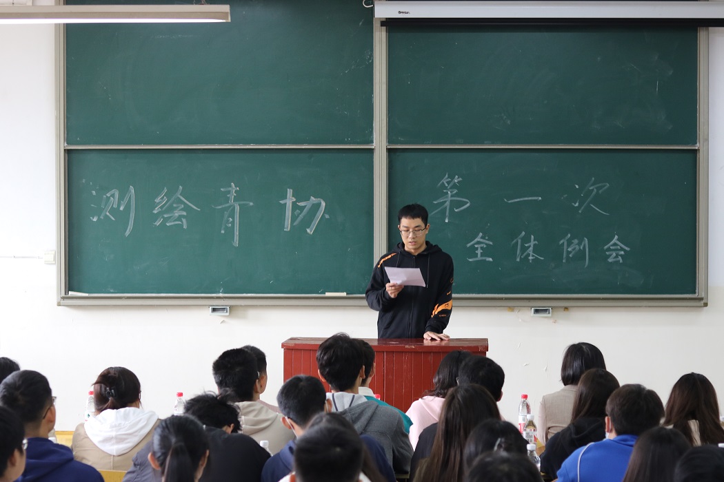的优良传统,踏实做事、不断创新,希望新干事们可以在这里收获快乐,收获友谊,收获力量。耿慧娟结合自身生活和志愿经历,希望大家可以平衡好学习和工作,凭借热爱去坚持志愿服务,认为“不忘初心、志愿不移”应是每个青协人的本心。测绘青协会长权高峰在发言中分别对干事、部长提出未来的工作期望,他希望大家在志愿活动中都能严格要求自己,坚守“奉献、友爱、互助、进步”的志愿精神,并表示在今后的工作中会以身作则,率先垂范。测绘青协主席团成员寇佳倩、龙平、冯嘉轩发表对于青协工作的心得体会,希望22级同学们在测绘青协都能有所获、有所得。各部门代表上台介绍部门的主要工作职责,近期工作内容及未来的工作规划,鼓励各部门之间加强交流、共同合作。在新生交流环节,大家积极主动、畅所欲言,表示会以极高的热情和负责任的态度投入接下来的工作当中。第32届测绘青协第一次全体例会在热烈的掌声中落幕。