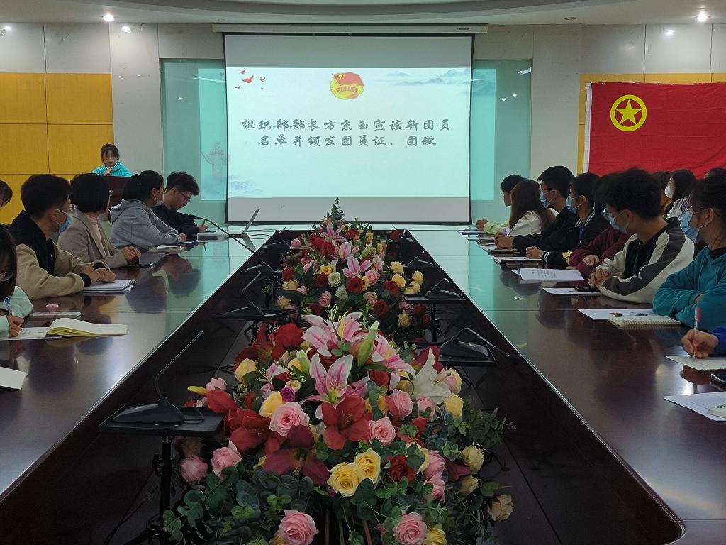 团委在院楼101会议室举办新团员入团仪式,团委书记李静老师、新团员和团委综合办公室全体成员参加。