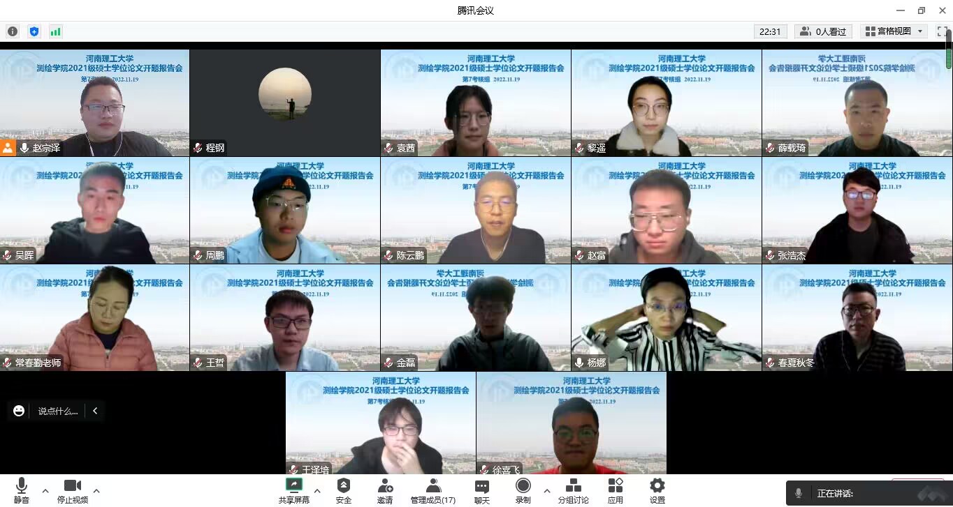 2021级硕士研究生学位论文开题答辩会以腾讯会议形式在线上召开。