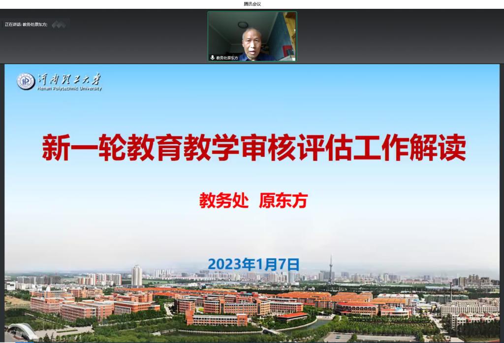 全体教职工深刻领悟党的二十大报告的核心要义和精神实质,加强师德师风建设和廉洁教育,凝聚思想共识,强化使命担当有着重要启发作用;教务处副处长原东方作题为《本科教育教学审核评估工作解读》的报告,从新一轮审核评估分类、评估流程评估新变化等方面进行了阐述,详细介绍了校内外综合评价、院校间常模比较和做好自评自建工作的内容,对微扑克app