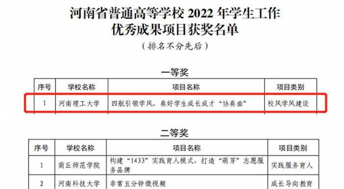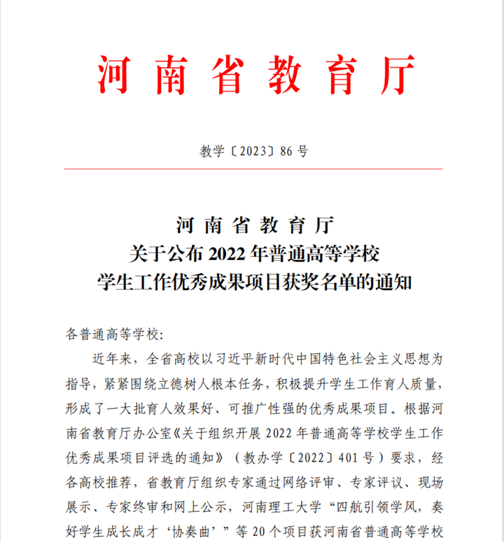 近日,河南省教育厅下发《关于2022年普通高等学校学生工作优秀成果项目获奖名单的通知》,由微扑克下载