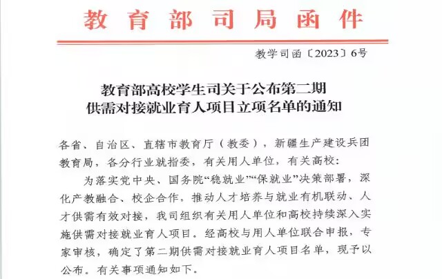 近日,教育部发布《教育部高校学生司关于公布第二期供需对接就业育人项目立项名单的通知》(教学司函〔2023〕6号),微扑克app