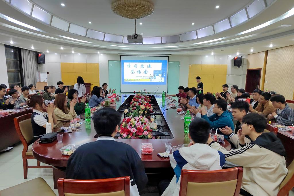 一楼会议室开展了以“以心相伴,畅谈未来”为主题的学习交流茶话会,辅导员李静老师、班主任连增增老师全程参与。