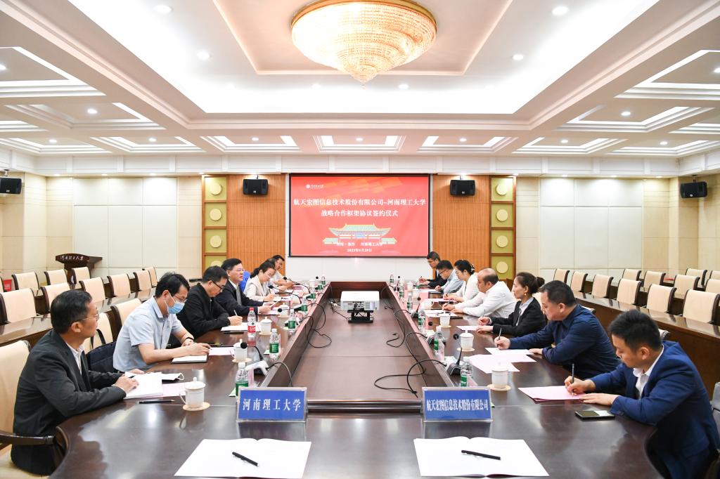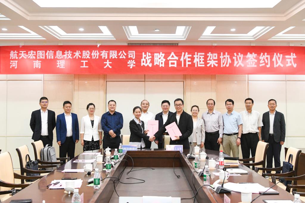 与航天宏图信息技术股份有限公司战略合作框架协议签约仪式在力行楼方形会议室举行。校党委书记邹友峰、航天宏图信息技术股份有限公司执行总裁刘阳等双方有关同志出席签约仪式。