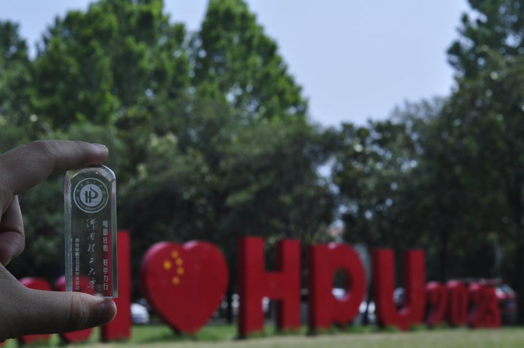 为每一位毕业生精心订制的专属纪念礼物。印章章体正面镌刻着河南理工大学的校徽、校风、校训以及“2023届微扑克下载