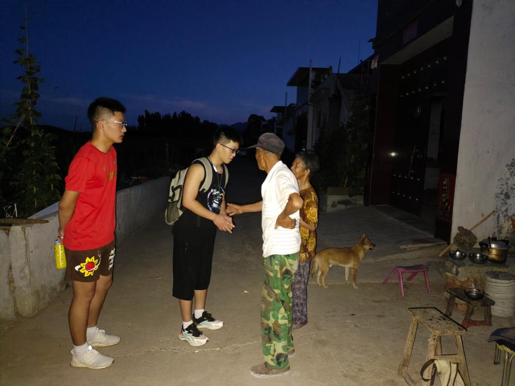 8日上午,孟子皓和李文卓两位同学按照分工,负责北寨村的土地利用问卷入户调查工作。北寨村隶属南寨镇,是一个移民搬迁村,村情较为复杂。入户孟姓老人家调查时,得知老奶奶由于甲状腺恶性结节,于前年冬季做了手术,造成了发声困难,家庭也不太富裕,但老人家生活态度积极乐观,视学生如自己孙辈,热情接待,虽然吐字发音吃力,但对调查内容有问必答,令两位同学十分感动。孟子皓和李文卓商量后,于当天晚上购买米油看望老人;老两口非常感动,拉着两位同学的手久久不松开,坐在一起拉家常直至很晚。临行前,同学们表示,下一年度实习调研时,一定会再次看望老人。