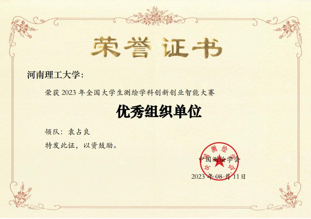在本届全国大学生测绘学科创新创业智能大赛中荣获优秀组织奖。