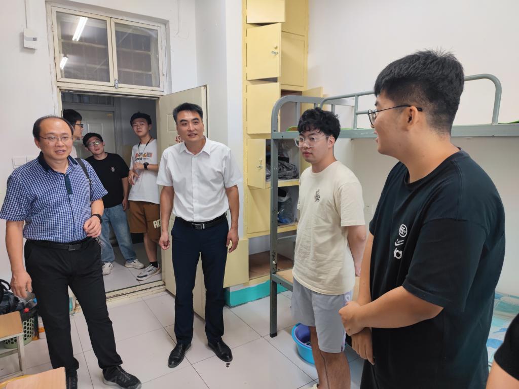 领导和老师先后来到松一、松八、兰二、27号公寓的每个新生寝室与他们进行亲切交流。仔细询问学生的住宿、饮食、学习等情况,耐心解答学生在生活和学习上遇到的困难,鼓励学生多参与课外活动,培养兴趣爱好。走访过程中张书记强调,安全第一,秋季是各类事故的高发季节,要加强安全教育和检查,严格遵守学校规定,对自己和他人负责。此外,领导和老师重点关注了家庭经济困难和特殊困难的学生,了解他们的实际情况,向他们介绍国家和学校的资助政策。同学们表示会牢记嘱托并感谢领导老师们的关心。
