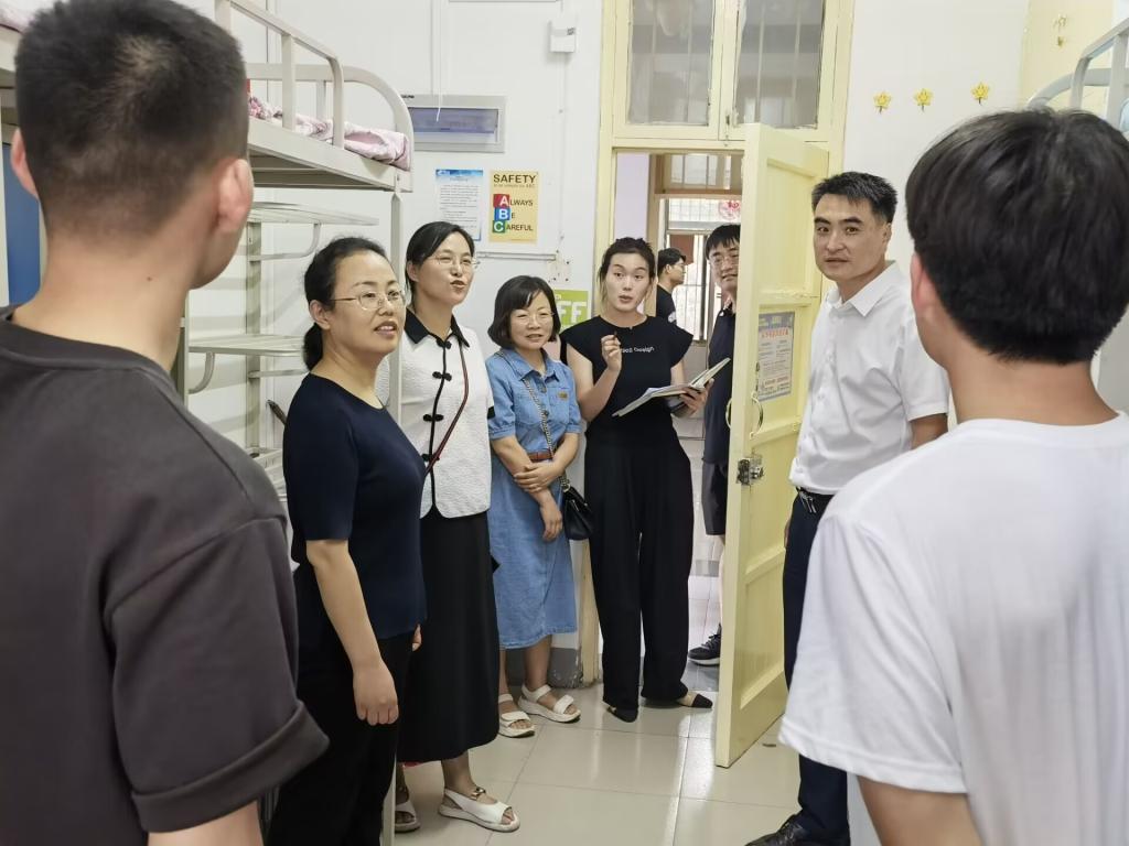 党委书记张红霞、党委副书记郭学鹏、副院长程钢、研管办主任谢玉娟、研究生辅导员范梦瑶、杨永菊等领导和老师,带领研究生走访2023级研究生宿舍。