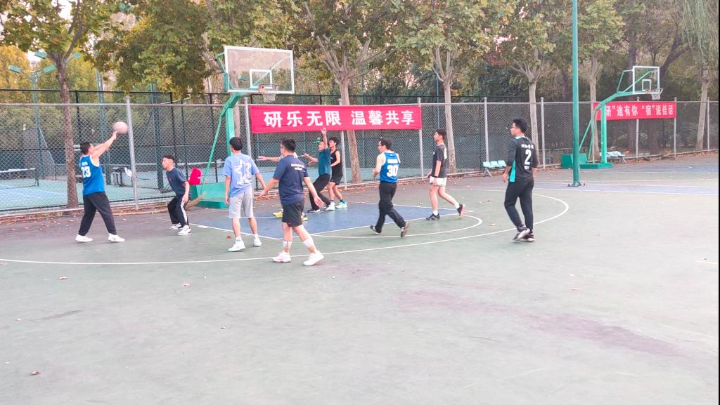 随着裁判的一声哨响,师生篮球友谊赛正式开始。学生队率先进入状态,凭着默契的配合和精准的投篮,在上半场取得领先。教师队则凭借经验迅速稳住阵脚,积极攻防,紧紧咬住比分。最终学生队以3分惜败教师队。