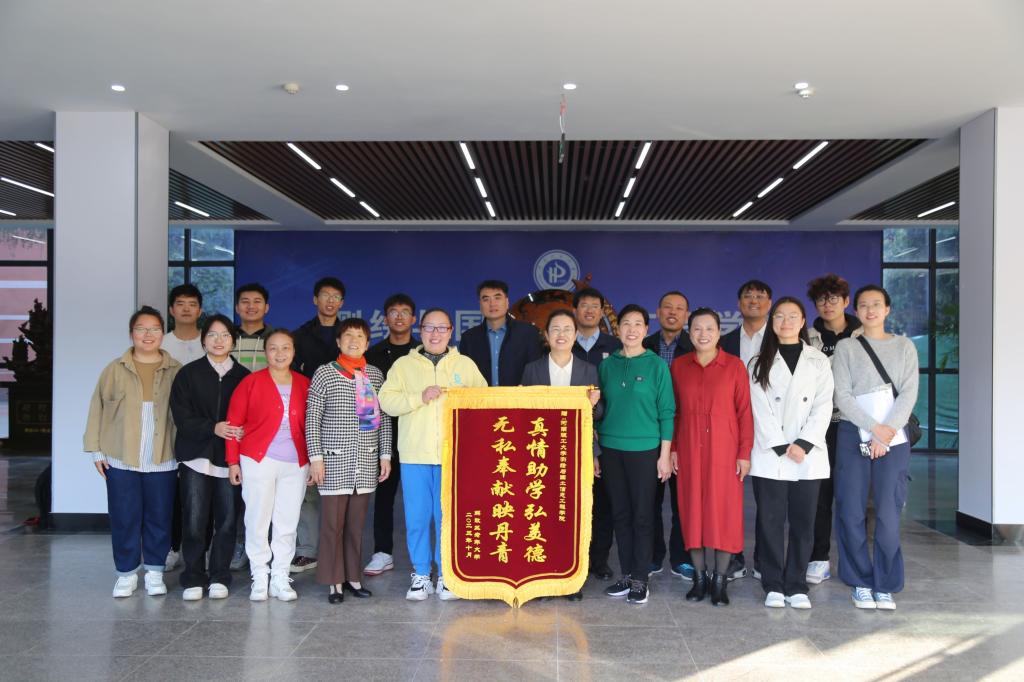 赠送一面绣着“真情助学弘美德,无私奉献映丹青”的锦旗,以感谢微扑克下载