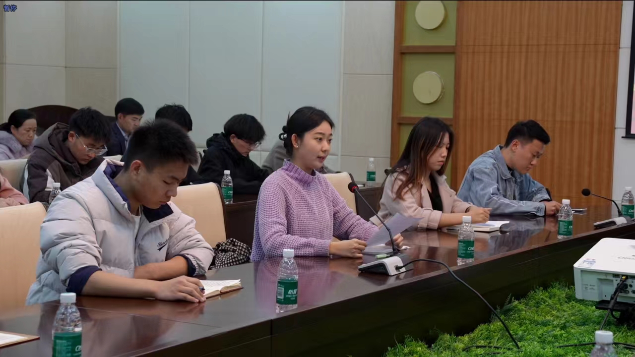 党委书记张红霞、辅导员代表和研究生第一党支部及2021级学生代表共同聆听。