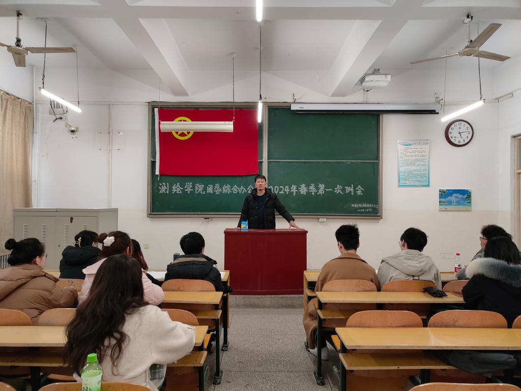 团委综合办公室于测绘院楼302召开春季第一次全体例会。团委书记丰习才老师及团委综合办公室全体成员参加会议,会议由办公室朱鸣阳主持。