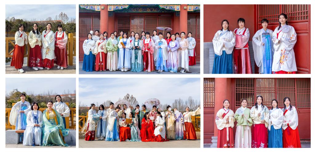 汉服,作为中华民族的传统服饰,承载着礼仪文化的丰富底蕴。在化妆师的巧手下,平日里忙于工作的女教工们摇身一变,纷纷化身仙姿婀娜的舞者、英姿飒爽的侠士,仿佛穿越了千年的时光。随后,老师们身着汉服霓裳,在校园里进行写真拍摄,零距离感受汉服的独特魅力,体验到一场别开生面的汉文化盛宴。