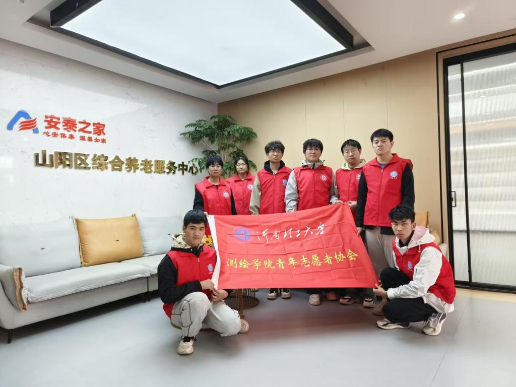 青年志愿者协会的志愿者们准时在学府门前集合,乘坐11路公交车前往山阳区综合老年服务中心,开启本次志愿服务活动。