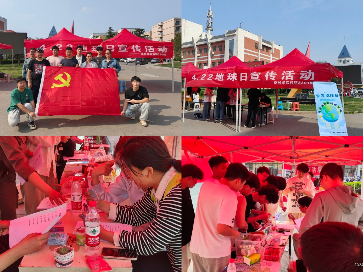 自然地理系党支部组织自环2301班学生在学苑餐厅前开展了“保护海洋,为地球而行”的世界地球日宣传活动。