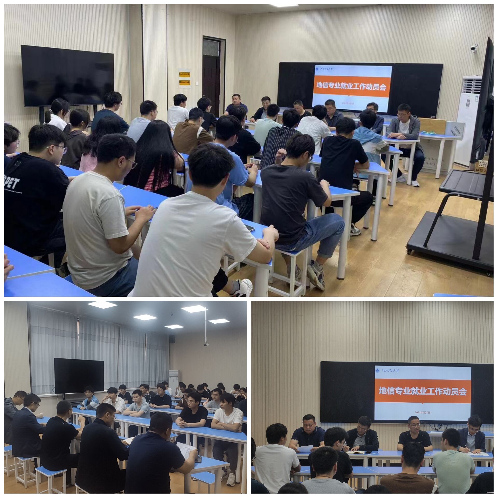 227智慧教室举行2024届毕业生就业工作动员会,地理信息科学系景海涛、王世东、王磊、栾文飞、2024届班主任程结海、王新闯及2024届地信专业毕业生出席会议,会议由王新闯主持。