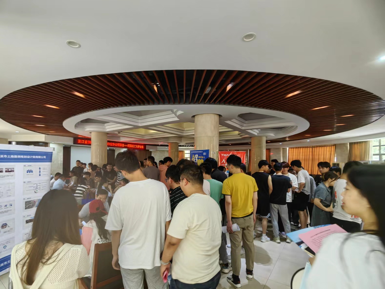 联合浙江省测绘与地理信息行业协会以及浙江10家测绘行业知名企业于大学生活动中心一楼招聘大厅召开专场招聘会。本次会议参会人员有浙江省测绘与地理信息行业协会会长吴红伟、浙江地区10家测绘行业知名企业招聘经理以及2024届毕业生代表,院团委书记丰习才主持会议。