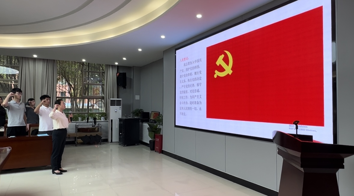 党委在一楼会议室组织开展毕业生党员重温入党誓词活动,活动由组织员李晶晶主持。