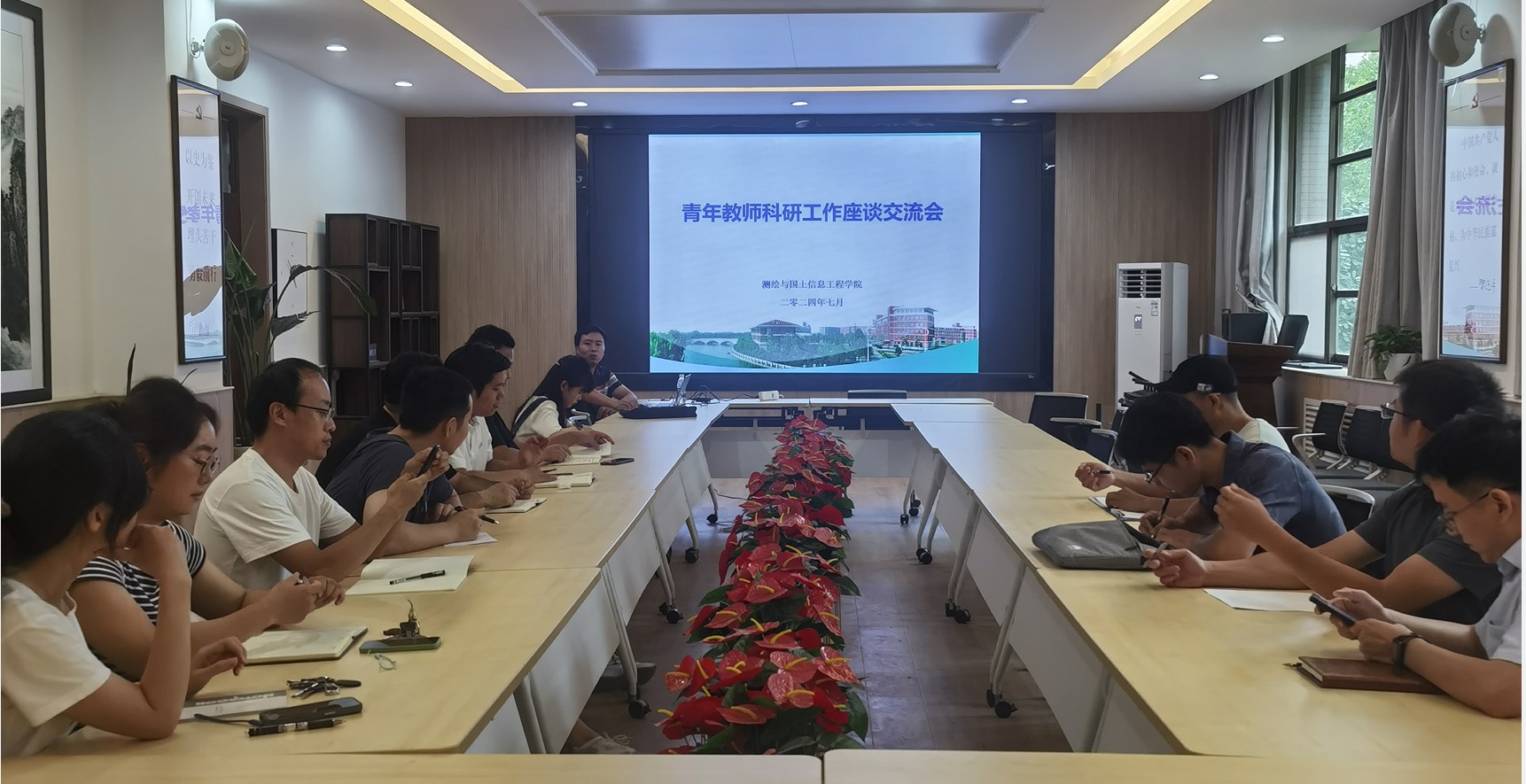 在二楼会议室召开了青年教师科研工作座谈交流会。近几年入职的13位青年教师参加交流会。副院长闫伟涛主持会议。