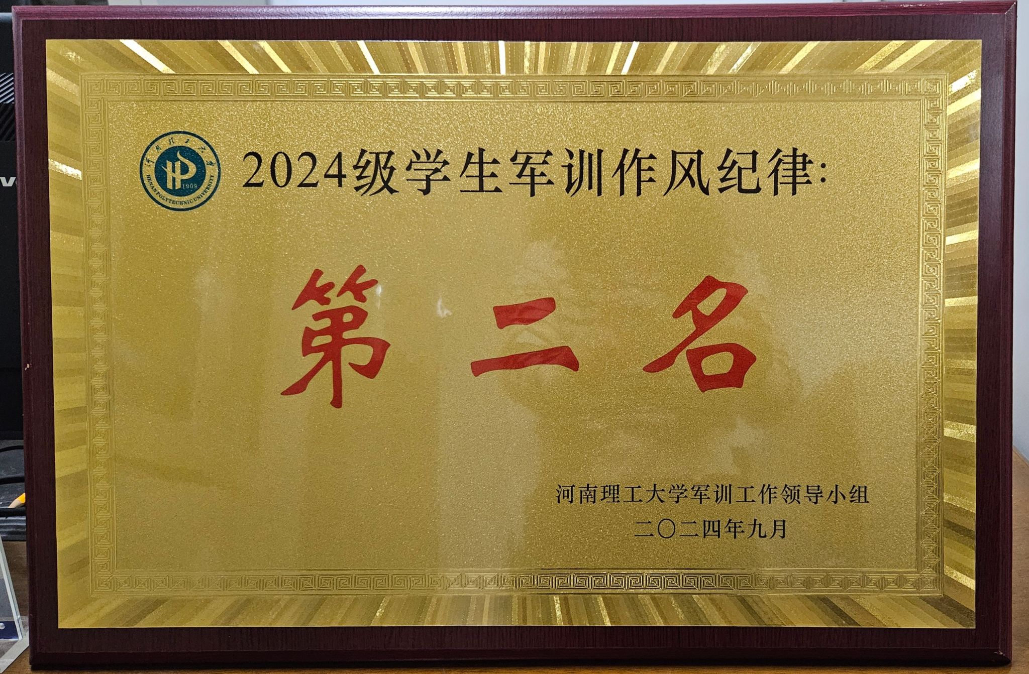 2024级新生于2024-2025学年军训期间,刻苦训练、动作整齐、表现突出,荣获“军训作风纪律”第二名。