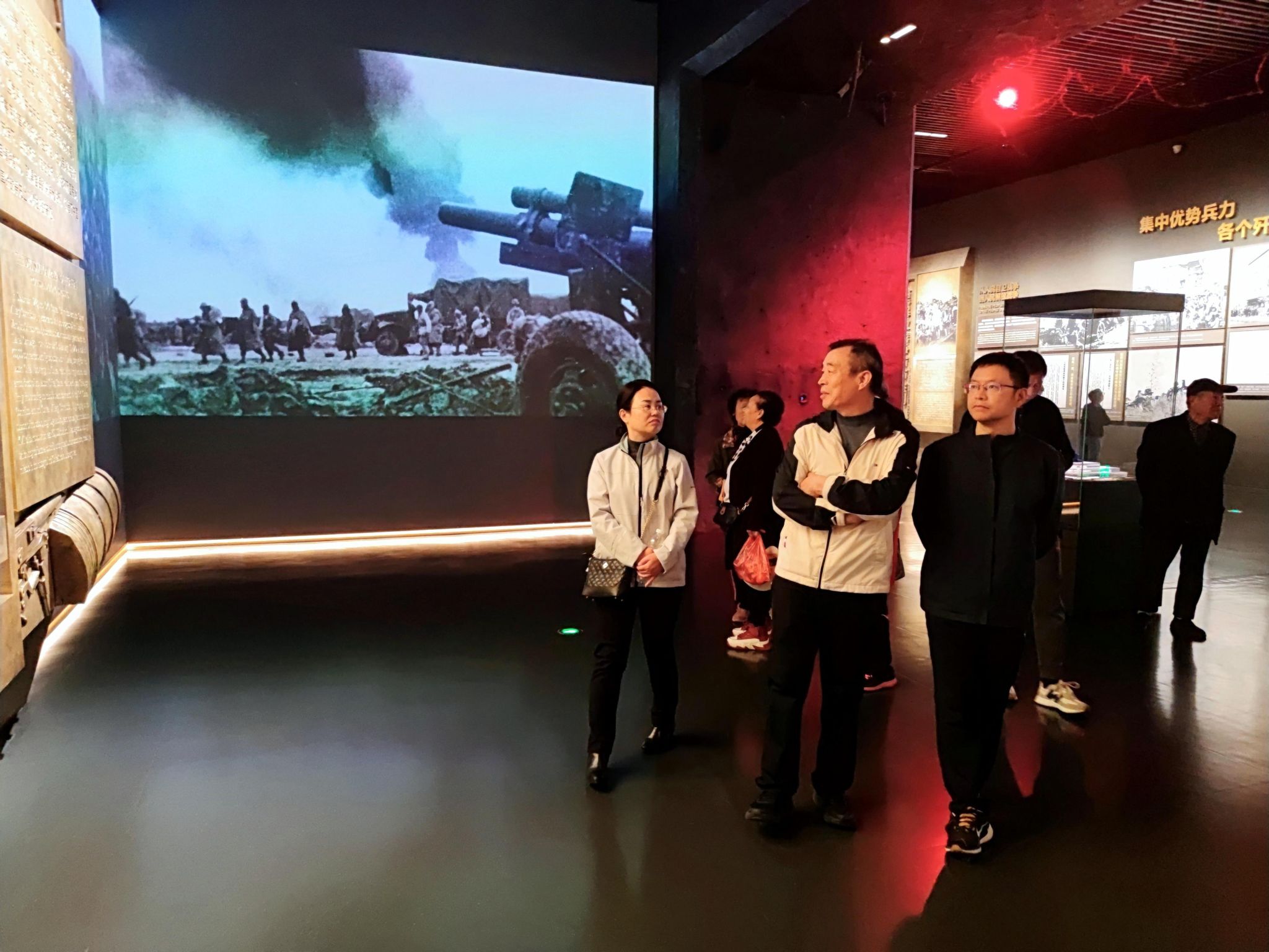 党委书记张红霞与测绘工程系支部书记蔡来良、教授魏峰远、专职组织员李晶晶、青年教师秦明等一行5人赴江苏徐州淮海战役纪念馆开展主题党日活动,重温淮海战役历史,感悟“人民的胜利”和“人民的力量”。