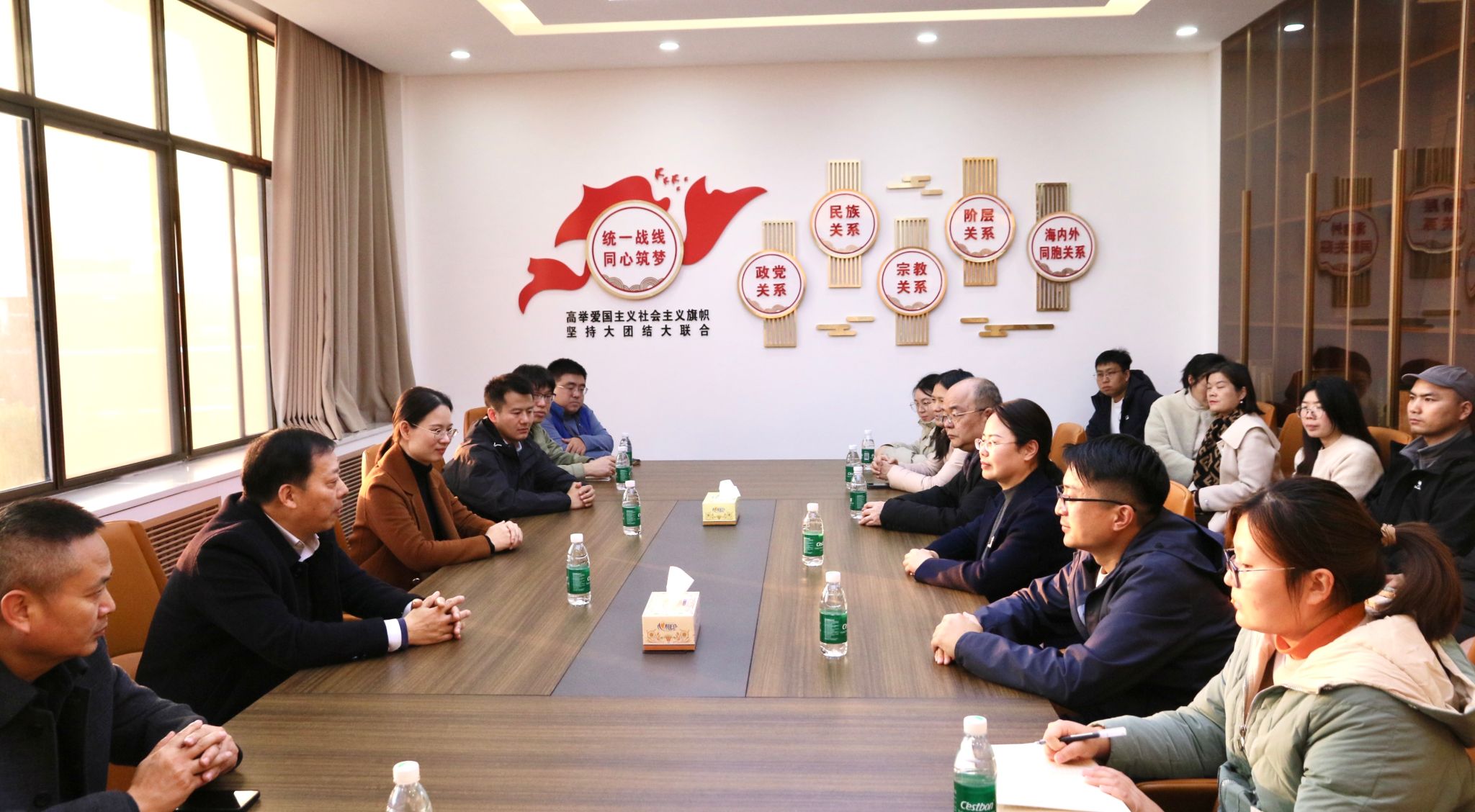相关领导、两院党外知识分子、归侨和其他统一战线人员30余人赴学校党委统战部开展“奏响同心曲 共谋合作篇”交流活动。党委统战部部长杨玉海、副部长李治民及统战部全体成员全程陪同。