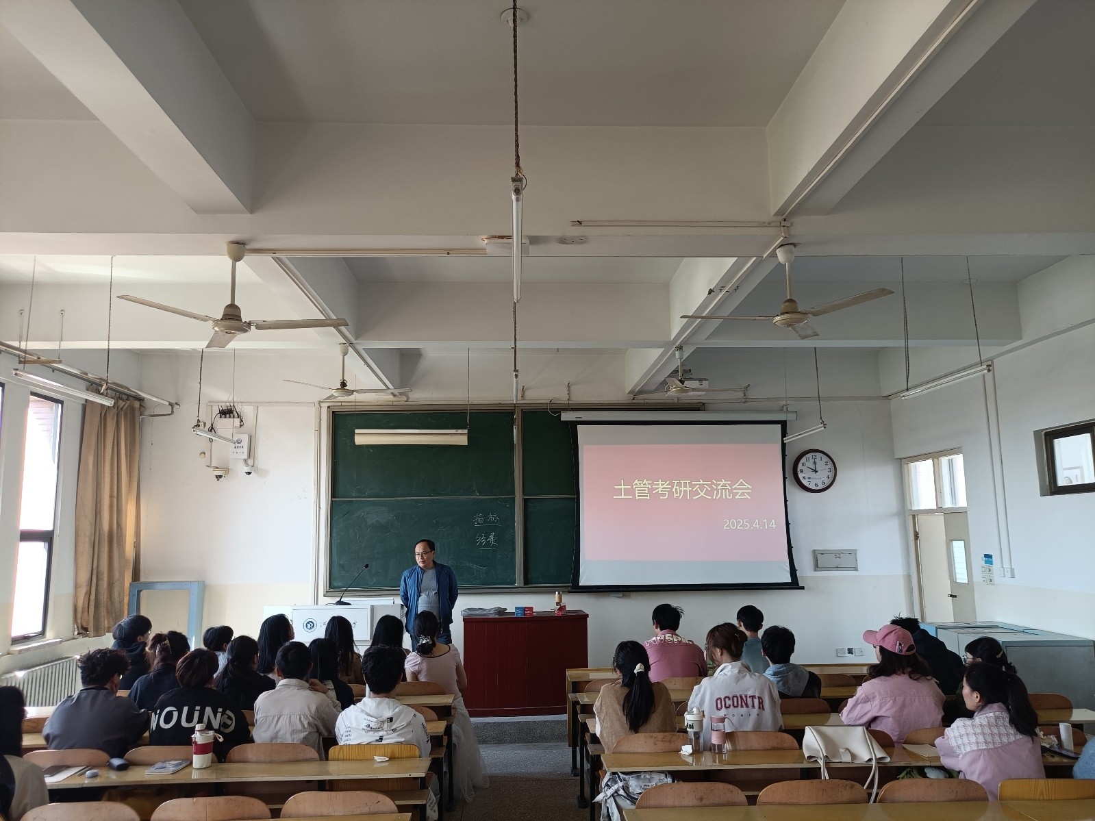 为帮助土管专业学子树立考研自信,解决同学们在考研阶段面临的疑惑,4月14日上午,土管专业2022级学生于院楼503教室召开考研经验交流会,会议由土管系主任王锐主持。