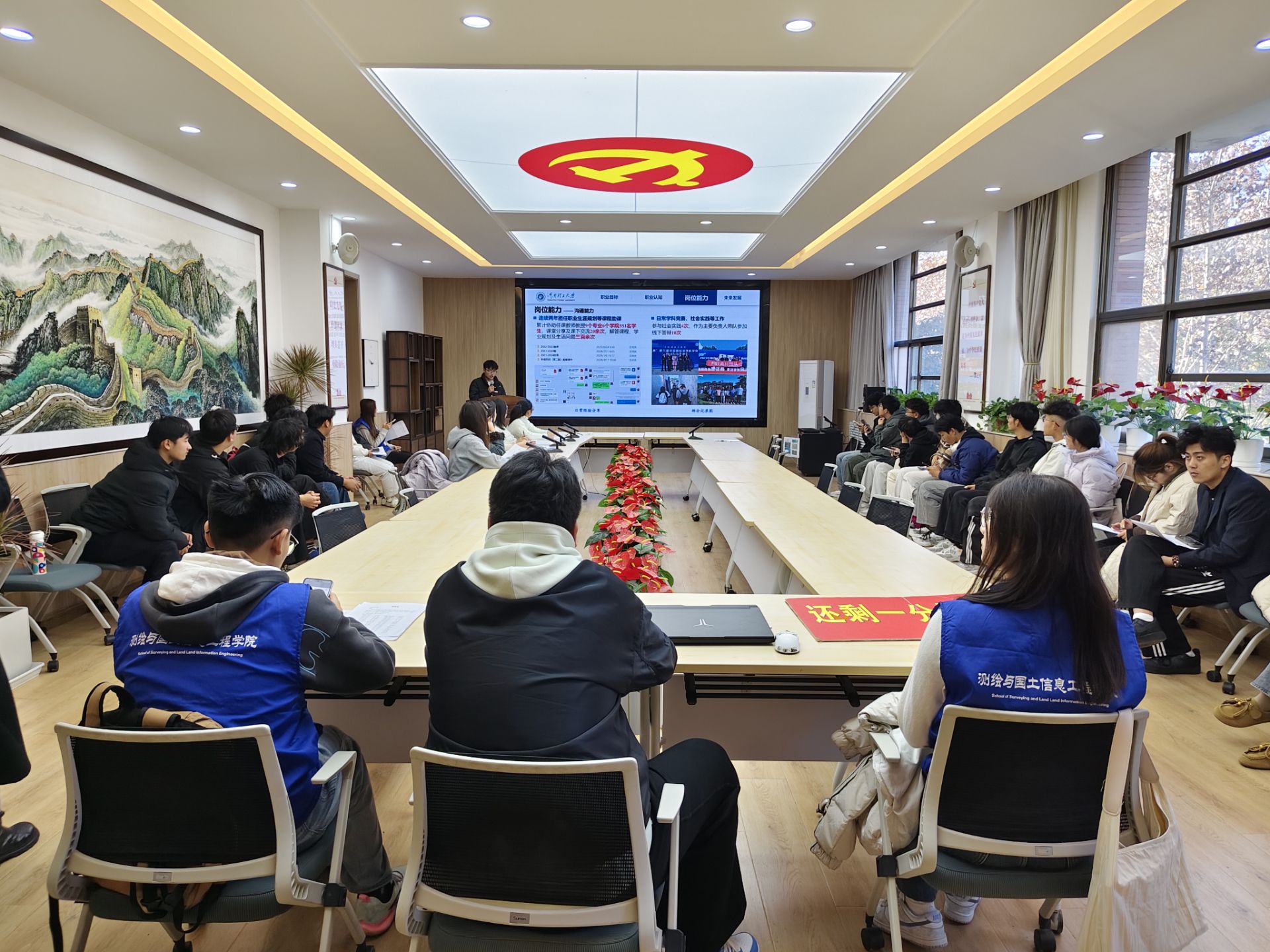 大学生职业生涯规划大赛在221会议室顺利开展。评委由院党委副书记王雷霞及辅导员邬艳君、范梦瑶、刘赛思、李瑜婷四位老师担任,同时邀请了上一届优秀选手鲁瑞波、吴浩泽、马寒玉到场分享职业规划大赛经验。