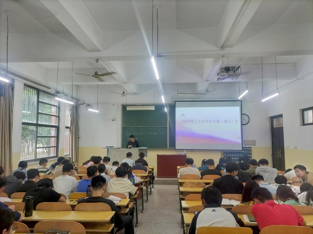 组织22级学生在院楼103室开展学习《河南理工大学学生手册(修订)》活动。