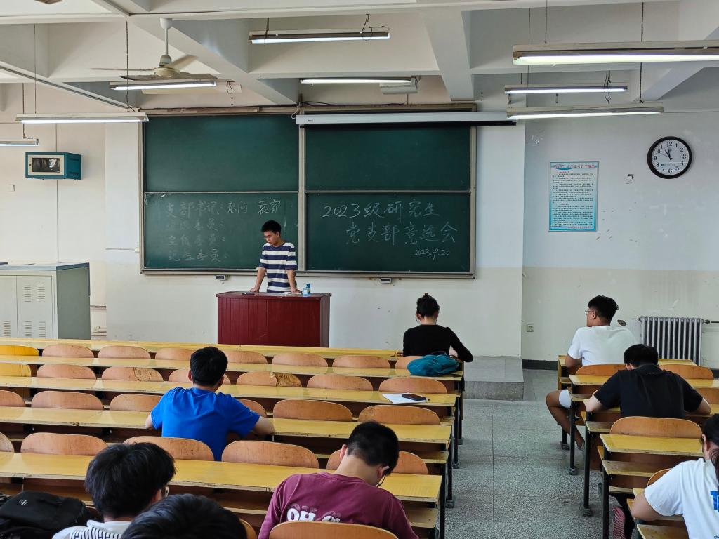 研究生第一党支部在院楼301室召开支委选举大会,2023级全体党员参会。会议由研究生辅导员范梦瑶老师主持。