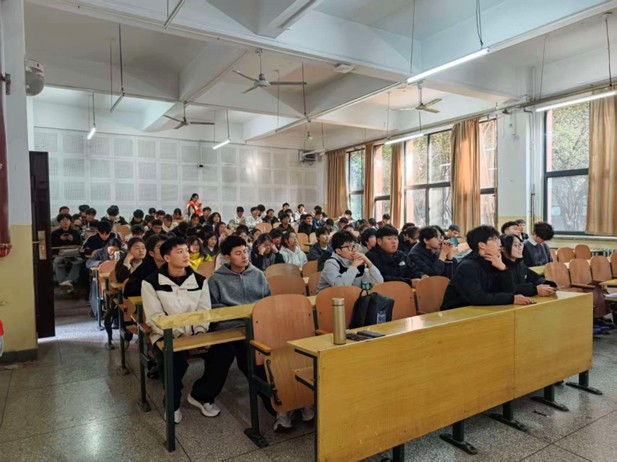 展演过程中,三位同学倾囊相授,台下同学专注聆听、认真记录。吴浩泽聚焦备赛核心,从赛前资料准备、比赛内容设计两大维度,细致拆解备赛关键环节;苏勇艺结合自身经历,以答辩环节的经验教训为切入点,着重强调严谨作答的重要性,不仅讲解答题逻辑与技巧,更分享了规避回答漏洞的实用方法;鲁瑞波则凭借斩获十余项国家级奖励的丰富经验,围绕大赛评审标准展开分享,精准提炼比赛核心内容,为同学们提供了兼具专业性与可操作性的备赛思路。互动提问环节,同学们踊跃举手,就备赛难点、职业方向探索等问题向他们请教,现场交流氛围浓厚。