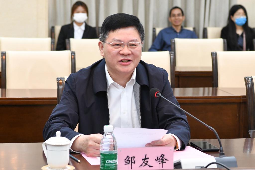 邹友峰在致辞中向刘阳一行表示热烈欢迎,简要介绍了学校的发展历程、办学特色以及近年来所取得的主要成绩,着重介绍了测绘科学与技术学科发展情况。他表示,此次校企战略合作是双方加强交流、深化合作的一个里程碑,标志着双方的合作关系上升到新高度,迈上新台阶。希望双方注重合作成效、深化合作内涵、建立长效机制,不断拓展双方合作领域,持续提升合作层次和水平。
