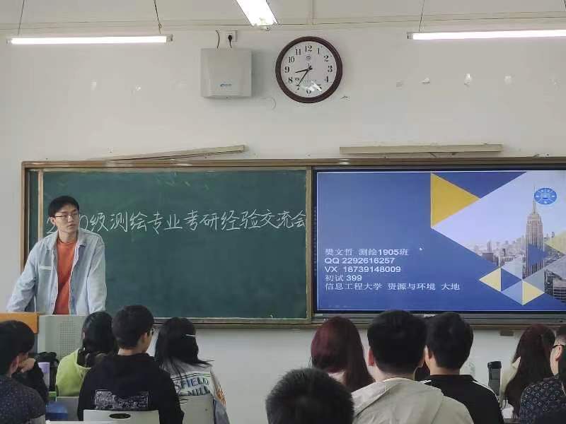 于一号教学楼1505教室召开测绘工程专业考研经验交流会。交流会由李静老师主持,微扑克app