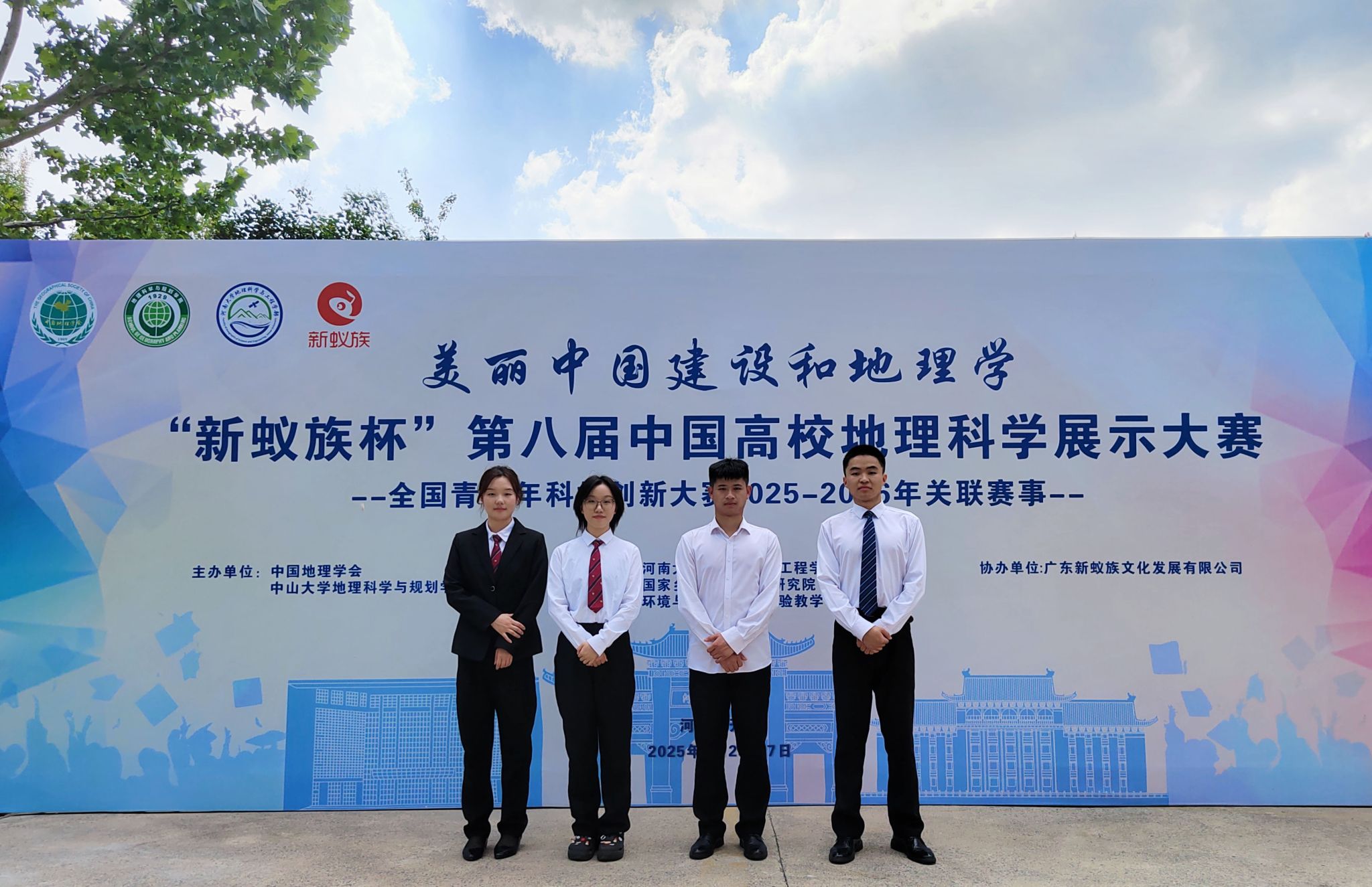 自然地理与资源环境专业两支参赛队伍,由祁亚辉、秦小静老师指导的2022级本科生张高丽、杨婉祯、唐国昌、蒋政,陈晓舒、高函老师指导的2023级陈雨兴、张瑞娇、刘丹亭、苏向莉、王童童组成,凭借优异的表现在全国总决赛上脱颖而出,双双荣获二等奖。