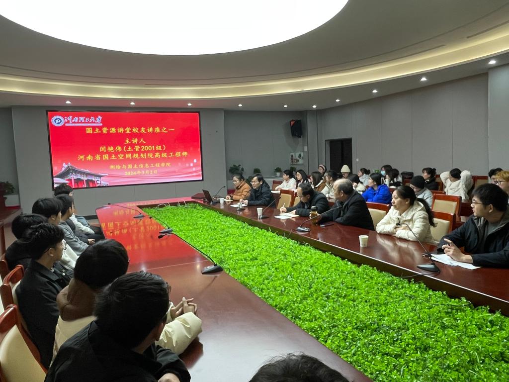为深入学习贯彻党的二十大精神,加强基层党组织建设,强化支部党建引领能力,2024年3月2日上午,土地资源管理系成功举办第一期国土资源讲堂暨“党建引领聚合力,传承励新促前行”思源汇智校友讲座。邀请河南省国土空间调查规划院高级工程师土地资源管理2001级校友闫艳伟作“新时代土地资源管理专业的新发展”主题报告,土管系党支部书记傅建春、系主任王锐、2022与2023级全体学生及学业导师参加了本次活动,会议由傅建春主持。