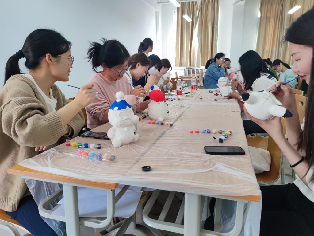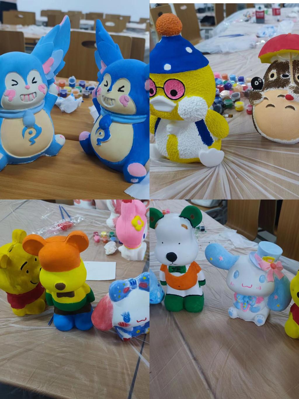 石膏彩绘是由参与人员亲自动手,利用画笔和防水颜料,参照样品对各种造型的卡通石膏像白坯进行彩绘。参与人员不仅能在彩绘过程中锻炼自己的动手能力,尽情发挥想象力,还可以将自己彩绘的作品作为收藏的小礼物。每一件独一无二的作品都是大家心灵手巧、热爱生活的表现。大家分别对自己的作品进行展示,在相互交流学习的友好氛围中,结束了本次活动。